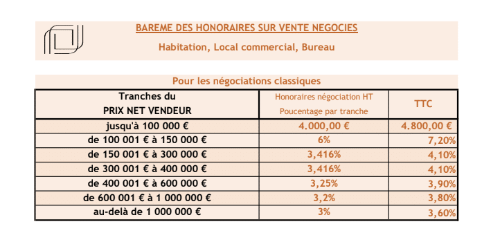 Barème des honoraires sur ventes négociées – négociations classiques : Accessible ici