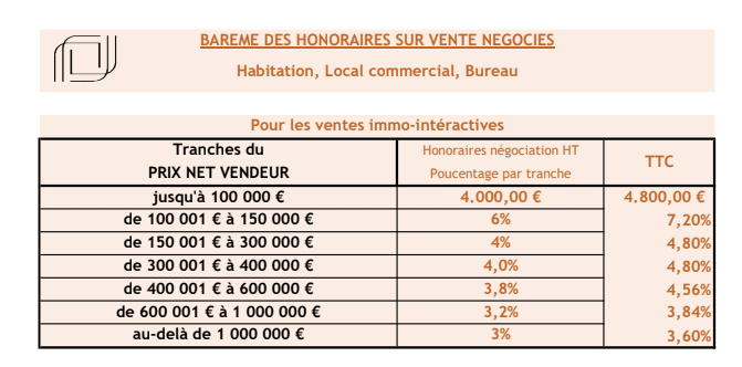 Barème des honoraires sur ventes négociées – négociations interactives : Accessible ici